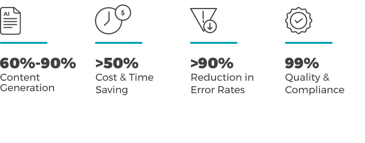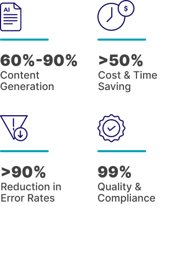Our client’s internal case studies show that MARS with human-in-the-loop delivers 5x efficiency by automating tasks, reminders, and collaboration, and co-authoring first drafts, all while maintaining global compliance. It’s the only complete, modular platform that scales at your pace.